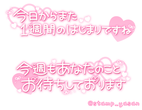 「今日からまた1週間のはじまりですね」「今週もあなたのことお待ちしております」のスタンプ