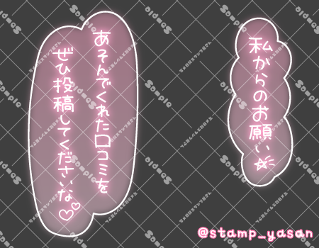 「私からのお願い」「あそんでくれた口コミをぜひ投稿してくださいな」のスタンプ(縦書き)