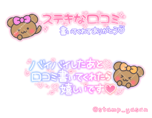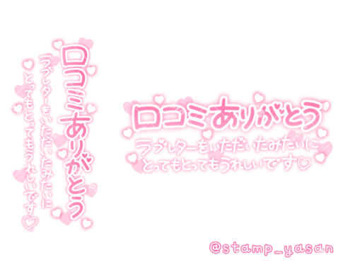 「口コミありがとう ラブレターをいただいたみたいにとってもとってもうれしいです♡」のスタンプ(縦書き有)