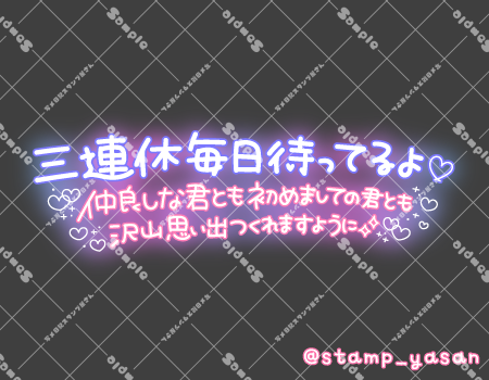 「三連休毎日待ってるよ♡仲良しな君とも初めましての君とも沢山思い出つくれますように」のスタンプ