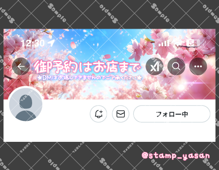 「御予約はお店まで DMはお返しできませんのでご了承ください」のXヘッダー