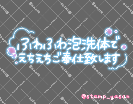 「シャンプーしてあげる あたま洗ってサッパリしましょ」「汗流しにおいで ぜーんぶキレイにしてあげる」のスタンプ