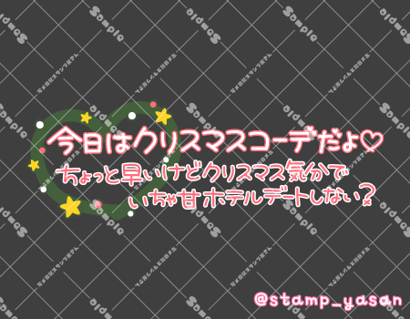「今日はクリスマスコーデだよ♡ちょっと早いけどクリスマス気分でいちゃ甘ホテルデートしない?」のスタンプ