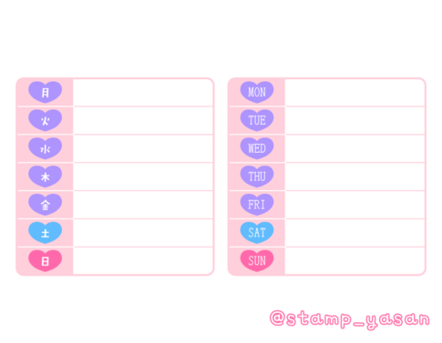 曜日のみ週間カレンダースタンプ(漢字・英字/月曜始まり)