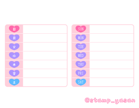 曜日のみ週間カレンダースタンプ(漢字・英字/日曜始まり)