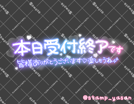 「本日受付終了です 皆様ありがとうございます♡楽しもうね」のスタンプ