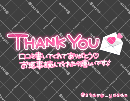 「THANK YOU 口コミ書いてくれてありがとう♡お返事読んでくれたら嬉しいです」のスタンプ