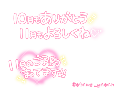 「10月もありがとう 11月もよろしくね」「11月のご予約まってます!!」のスタンプ
