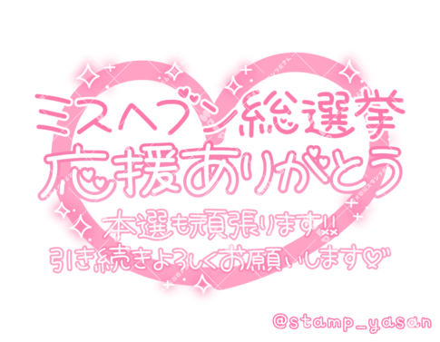 「ミスヘブン総選挙応援ありがとう 本戦も頑張ります!!引き続きよろしくお願いします」のスタンプ