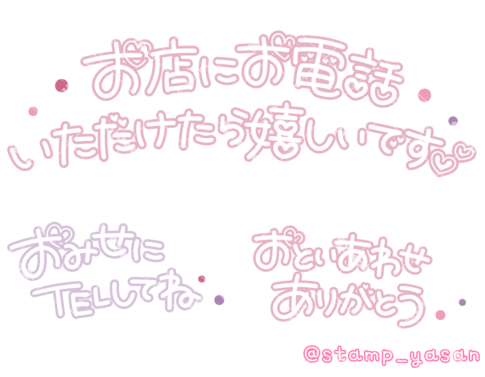 「お店にお電話いただけたら嬉しいです」「おみせにTELしてね」「おといあわせありがとう」のスタンプ
