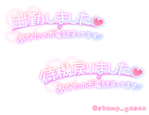「出勤しました あなたのお電話まってます」「待機戻りました あなたのお電話まってます」のスタンプ