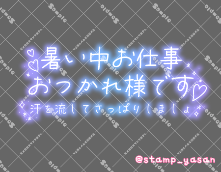 「今日も暑いけどがんばりましょうね」「ちょっとひとやすみ」「あつい中がんばったごほうび」のスタンプ