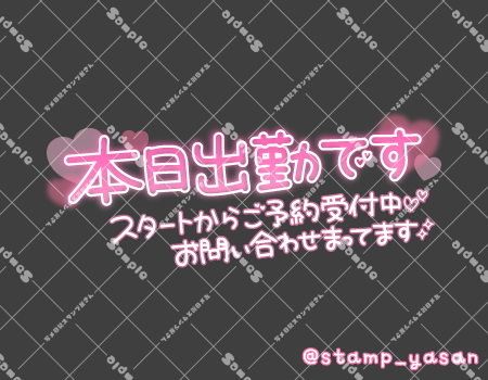 「本日出勤です スタートからご予約受付中♡お問い合わせ待ってます」のスタンプ