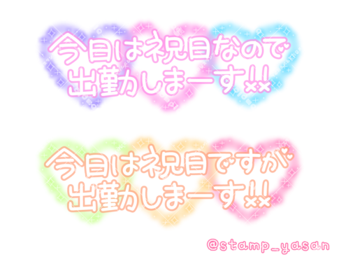 「今日は祝日なので(ですが)出勤しまーす!!」のスタンプ