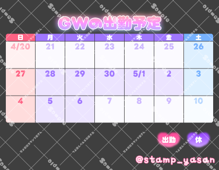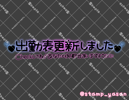 「出勤表更新しました♡Checkしてね あなたと御都合あいますように」のスタンプ