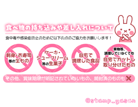「食べ物の持ち込みや差し入れについて」のお願いスタンプ