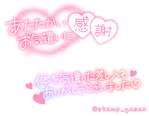 「あたたかいお気遣いに感謝」「体を気遣った差し入れありがとうございました」のスタンプ