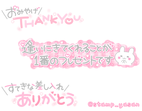 「おみやげTHANK YOU」「逢いにきてくれることが1番のプレゼントです」「すてきな差し入れありがとう」のスタンプ