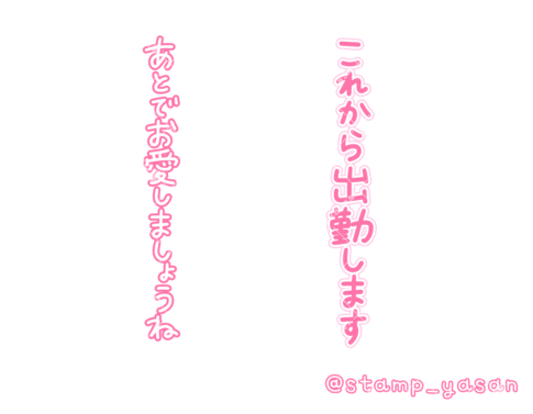 「これから出勤します あとでお愛しましょうね」の縦書きスタンプ