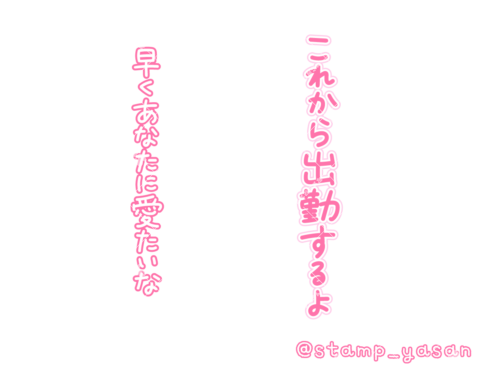 「これから出勤するよ 早くあなたに愛たいな」の縦書きスタンプ