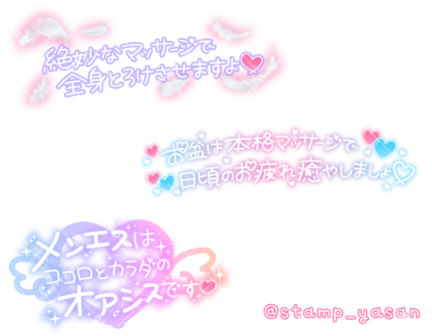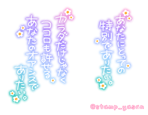 「あなたにとっての特別でありたい。」「カラダだけじゃなくココロも許せるあなたのオアシスでありたい。」のスタンプ(縦書き)