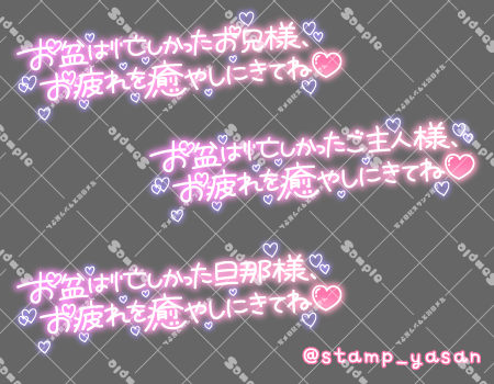 「お盆は忙しかったお兄様(ご主人様/旦那様)、お疲れを癒やしにきてね」のスタンプ
