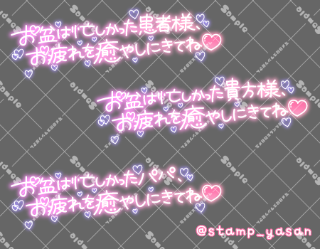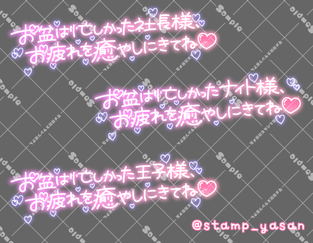 「お盆は忙しかった殿方(お客様/先生)、お疲れを癒やしにきてね」のスタンプ
