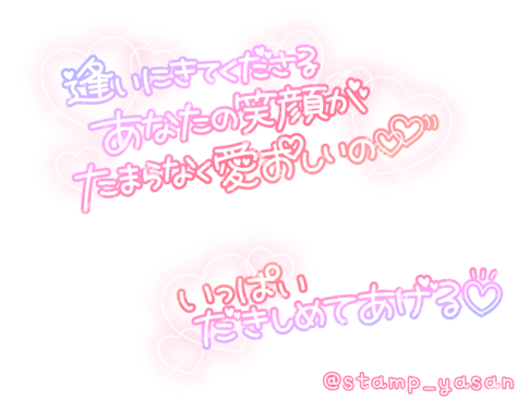 「逢いにきてくださるあなたの笑顔がたまらなく愛おしいの」「いっぱいだきしめてあげる」のスタンプ