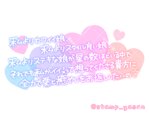 「私よりカワイイ娘、私よりスタイル良い娘、私よりステキな娘が星の数ほどいる中でそれでも私がイイ!って想ってくださる貴方に全力で愛と癒やしをお返ししたいの♡」のスタンプ