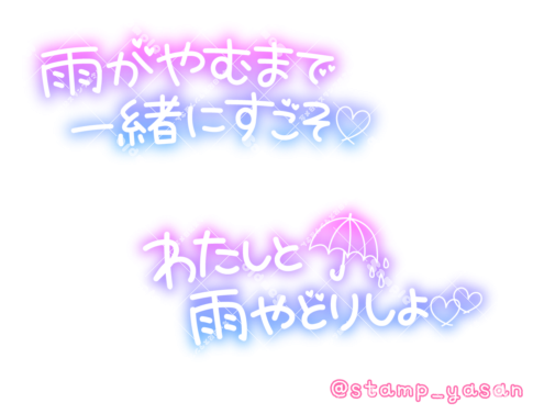 「雨がやむまで一緒にすごそ」「わたしと雨やどりしよ」のスタンプ