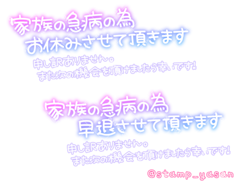 「家族の急病の為お休みさせて頂きます」「家族の急病の為早退させて頂きます」のスタンプ