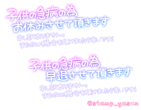 「子供の急病の為お休みさせて頂きます」「子供の急病の為早退させて頂きます」のスタンプ