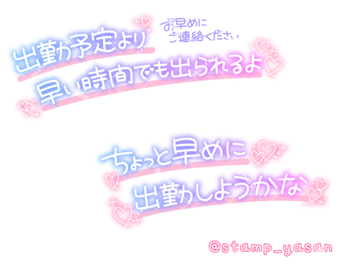 「出勤予定より早い時間でも出られるよ」「ちょっと早めに出勤しようかな」のスタンプ