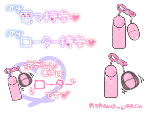 「my電マ持参」「myローター持参」「お気に入りOPはローターです」とローターイラストのスタンプ
