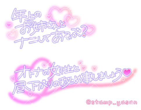 「ご指名してくださるお兄様からのあふれる愛と優しさのおかげで自分のことが前より好きになれました」「指名してくれるお兄ちゃんからのあふれる愛と優しさのおかげで自分のことが前より好きになれたよ」のスタンプ