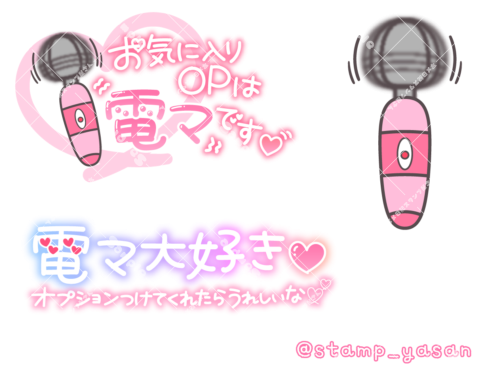 「お気に入りOPは電マです」「電マ大好き♡オプションつけてくれたらうれしいな」のスタンプ