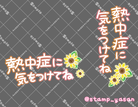 「熱中症に気をつけてね」のスタンプ(縦書き有)