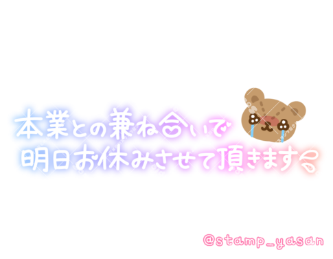 「明日出勤」「明日の枠、まだ空いてます」「あしたは私にあえる日です」のスタンプ