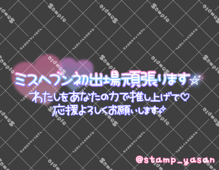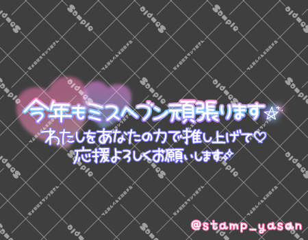 「今年もミスヘブン頑張ります わたしをあなたの力で推し上げて♡応援よろしくお願いします」のスタンプ