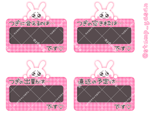 「今日(明日)は出勤 ご予約ありがとう またあとでね」「今日(明日)は出勤 空き有ります お電話してね」「これから逢いに行くね」のスタンプ