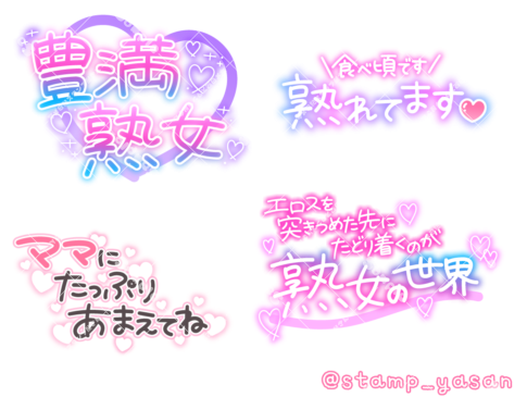 「こんな姿、ダンナには見せられない」「熟れたカラダは今が食べ頃です」のスタンプ