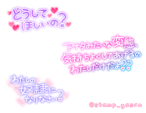 「どうしてほしいの?」「アナタみたいな変態、気持ちよくしてあげるのわたしだけだよ??」「わたしの奴隷になりなさい?」のスタンプ