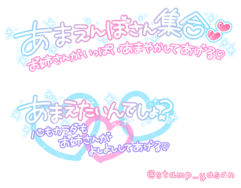 「あまえんぼさん集合」「あまえたいんでしょ?」のスタンプ