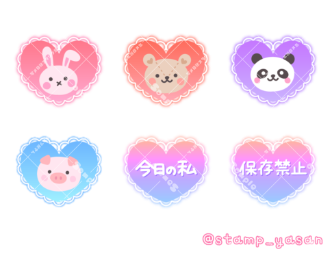 「今日の私」「保存禁止」とうさぎ・クマ・パンダ・豚のハートスタンプ