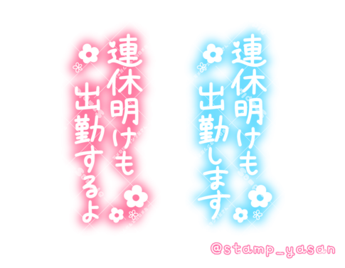 「連休明けも出勤します」「連休明けも出勤するよ」の縦書きスタンプ