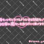 2025.09.29PR「お仕事疲れ、わたしに癒やさせて♡ぜーんぶ吹きとばしちゃいましょうね」のスタンプ 透かしなしのスタンプは会員登録でご利用できます♡素材はログイン後「協賛店舗様」広告下に表示されます。会員様はログイン状態で画面を少しスクロールして本素材を表示・保存してください。 広告掲載しませんか?詳細はこちら 協賛店舗様 【写メ日記代行】 Nさぽ ダイリー(写メ日記自動作成アプリ) コンテンツの残りを閲覧するにはログインが必要です。 お願い Log In. あなたは会員ですか ? 会員について