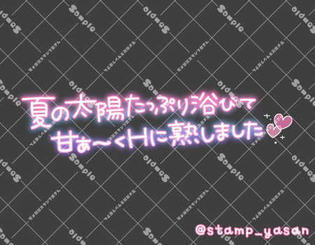 「夏の太陽たっぷり浴びて甘ぁ〜くHに熟しました」のスタンプ