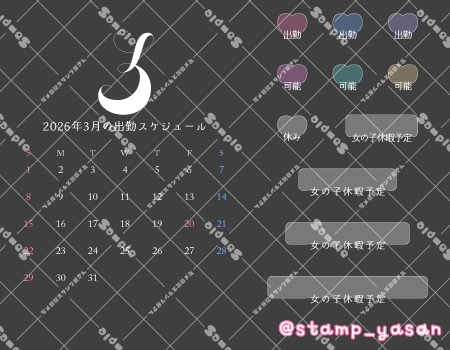 2026.01.19PR2026年3月のシンプルカレンダー 透かしなしのスタンプは会員登録でご利用できます♡素材はログイン後「協賛店舗様」広告下に表示されます。会員様はログイン状態で画面を少しスクロールして本素材を表示・保存してください。 広告掲載しませんか?詳細はこちら 協賛店舗様 【写メ日記代行】 Nさぽ ダイリー(写メ日記自動作成アプリ) コンテンツの残りを閲覧するにはログインが必要です。 お願い Log In. あなたは会員ですか ? 会員について