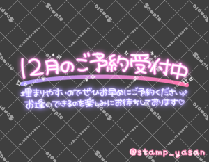 「12月のご予約受付中 埋まりやすいのでぜひお早めにご予約ください お逢いできるのを楽しみにお待ちしております♡」のスタンプ 2025 11/10 2025年11月10日 0 こちらの画像はサンプルです。保存やSNS等への掲載はご遠慮ください。会員登録・ログイン後に表示される『本画像』をダウンロードしてご利用ください。 用途あいさつ月末・月初のあいさつカラータグ12月 12月 文字 敬語 横書き 透過 この記事が気に入ったら フォローしてね! Follow @stamp_yasan_sub Follow me! 「シフト変更してます 詳しくはHPをご覧ください」のスタンプ 「出勤しました 本日まだまだお誘いお待ちしてます」のスタンプ