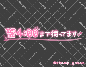 「29:00まで待ってます」のスタンプ 2025 5/28 2025年5月28日 0 こちらの画像はサンプルです。保存やSNS等への掲載はご遠慮ください。会員登録・ログイン後に表示される『本画像』をダウンロードしてご利用ください。 用途出勤・退勤・お誘いスケジュール・予約お誘い・待機中空き状況・受付終了カラータグ待ってる 待ってる 文字 敬語 横書き 透過 この記事が気に入ったら フォローしてね! Follow @stamp_yasan_sub Follow me! 「28:00まで待ってます」のスタンプ 「翌4:00まで待ってます」のスタンプ